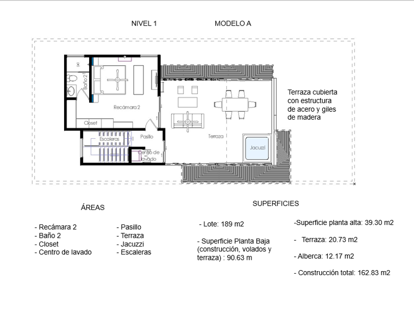 Alberca privada y con una amplia terraza en el primer nivel con opción a un jacuzzi con costo extra.