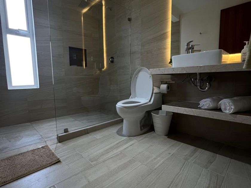 amueblado, moderno, espacios generosos, areas verdes, canchas, zona de niños, pet friendly, club de playa incluido en renta y mantenimiento, cuenta con club de playa, estacionamiento 2 autos, excelente vigilancia, restaurante y bar en Club de Playa.