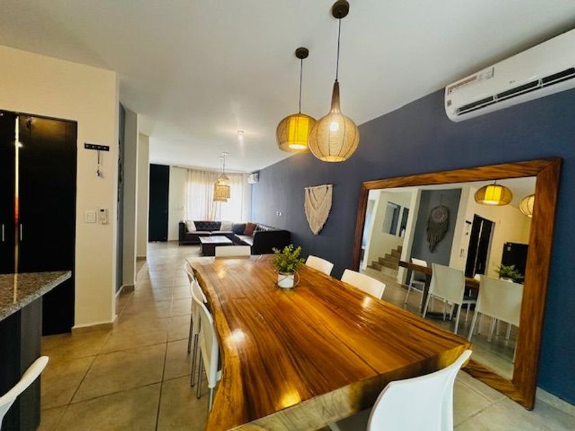 Casa en renta en la Joya residencial, la casa cuenta con 3 recamaras, 3 baños completos y 1 medio baño, terraza, estacionamiento para dos autos, cocina integral, aireas acondicionados, totalmente amueblada y equipada.
