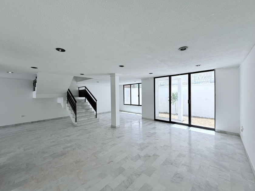 PRIMER PISO Cochera para 3 autos Recibidor 1 Medio baño Área de Sala - Comedor - Cocina integral Patio SEGUNDO PISO Área de TV 3 Habitaciones con clóset y baño c/u TERCER PISO Cuarto de lavado Cuarto de servicio con baño completo