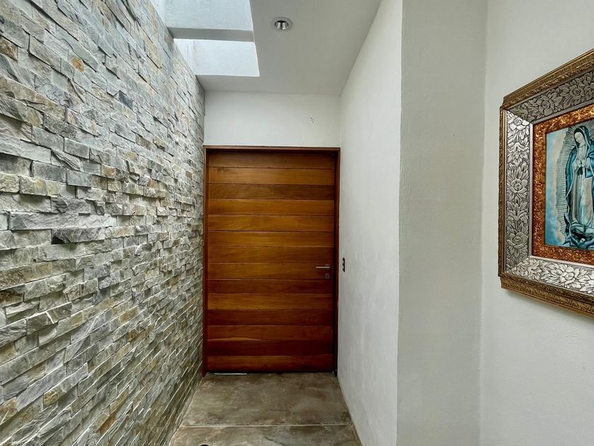 Casa de una sola planta con diseño contemporáneo que optimiza cada espacio para brindar comodidad y funcionalidad en todas las áreas: - Garaje para 4 vehículos - Entrada principal y entrada de servicio - Vestíbulo que da acceso a las áreas comunes - Cocina integral con isla para 8 sillas - Sala y comedor con diseño abierto - Patio y terraza techada con alberca, ideal para reuniones y esparcimiento - Baño para visitas - Área de servicio con asoleadero - Pasillo vestibular hacia habitaciones - Recámara principal con baño privado y clóset integrado - 2 recámaras secundarias con clóset integrado - Baño completo compartido para recámaras secundarias