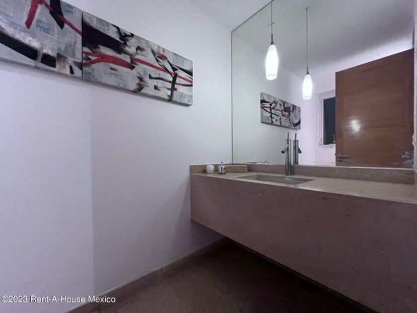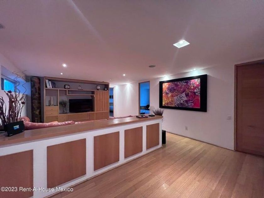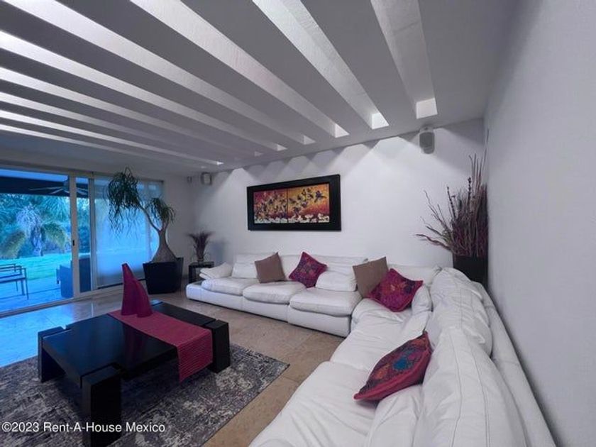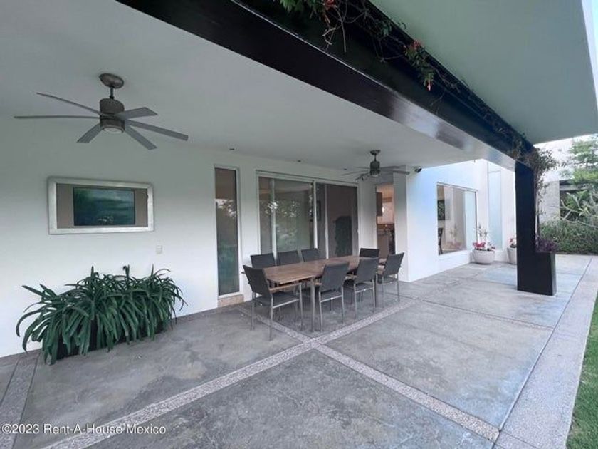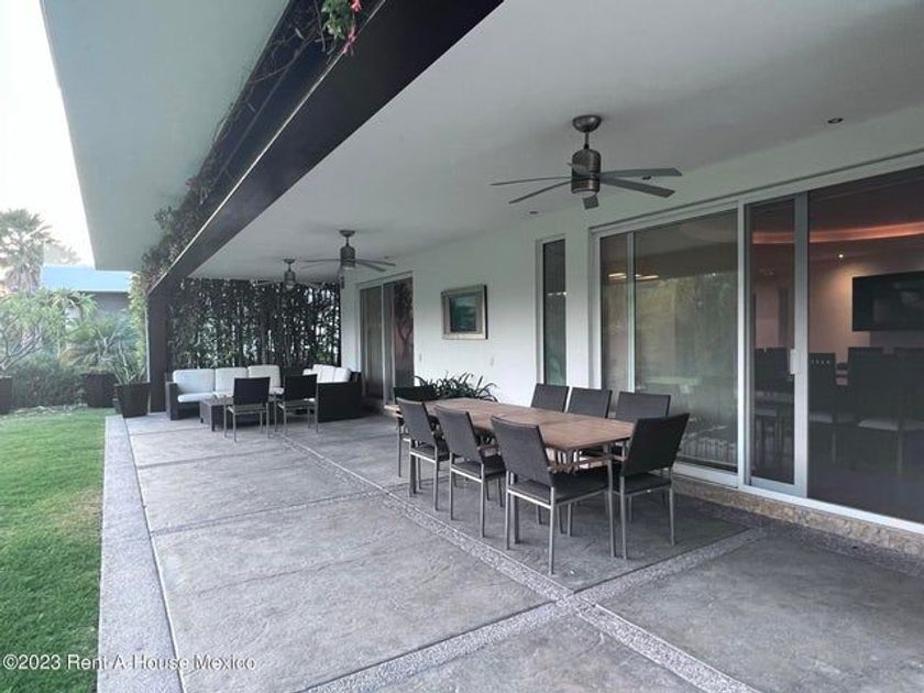 23-4254 En renta, residencia amueblada en Villas Regency Jurica. La casa cuenta con 6 amplios estacionamientos, de los cuales 3 se encuentran bajo techo y 3 mas descubiertos. Puerta de acceso de gran formato, recibidor, medio baño, estudio, amplia e iluminada sala comedor con chimenea y espectacular vista a la terraza jardín, cocina totalmente equipada, barra desayunador, torre de hornos, antecomedor,