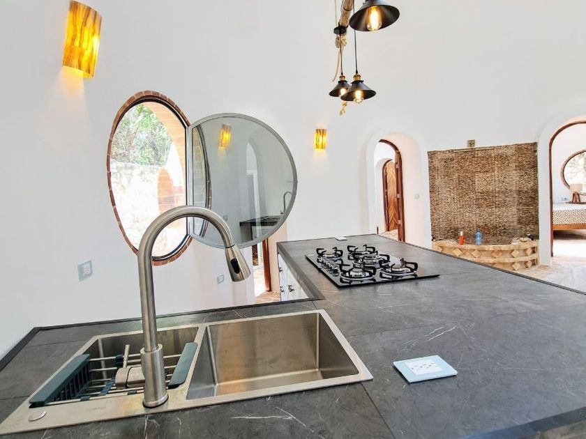 Los domos de la villa estan organizados de esta forma: – 1 DOMO PRINCIPAL, altura de 5.80 mt, con su propio baño completo; – 2 DOMOS LATERALES, altura 3.63 mt, con entrada independiente y predisposicion para una cocina completa. Cada domo tiene su propio baño. Lock off – 3 BAÑOS COMPLETOS; – AGUA FRIA Y CALIENTE EN CADA BAÑO Y COCINA --------------------------------------------------------------------- Caracteristicas: – terreno de 336 MQ, con 14 mt de frente y 24 mt de fondo; a 250 mt de la carrettera principal ( carretera Tulum-Coba);