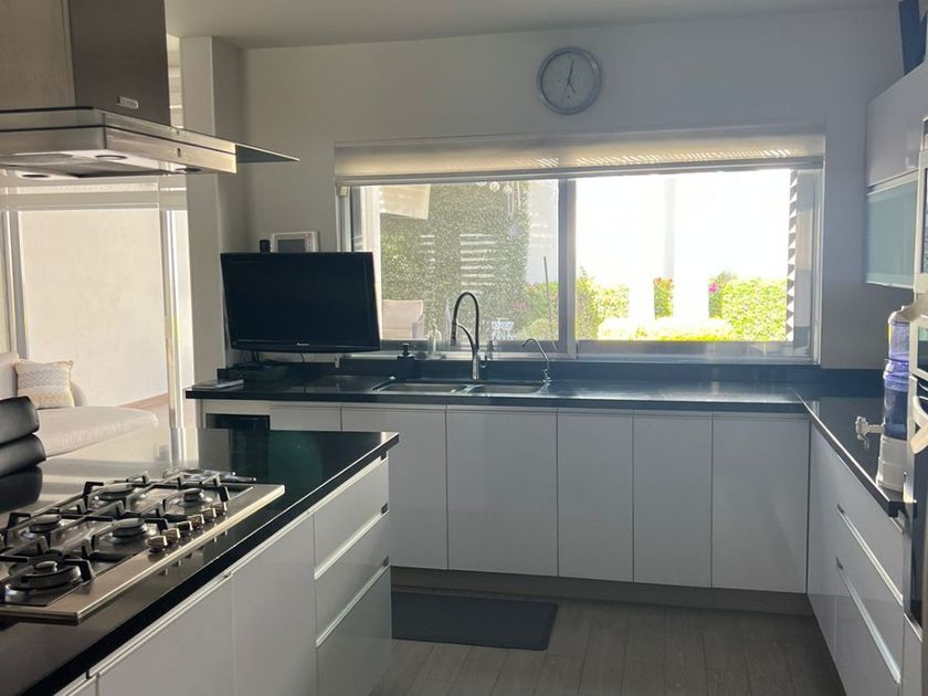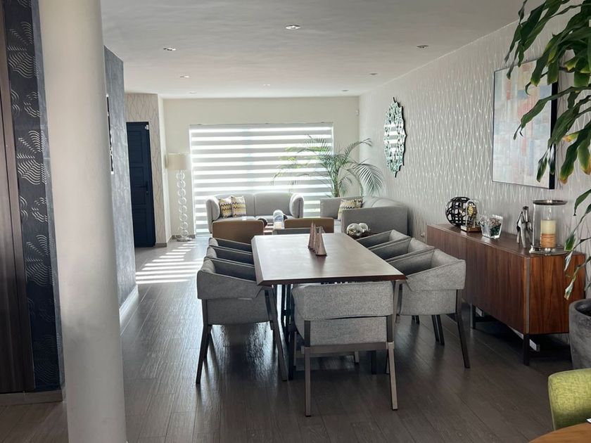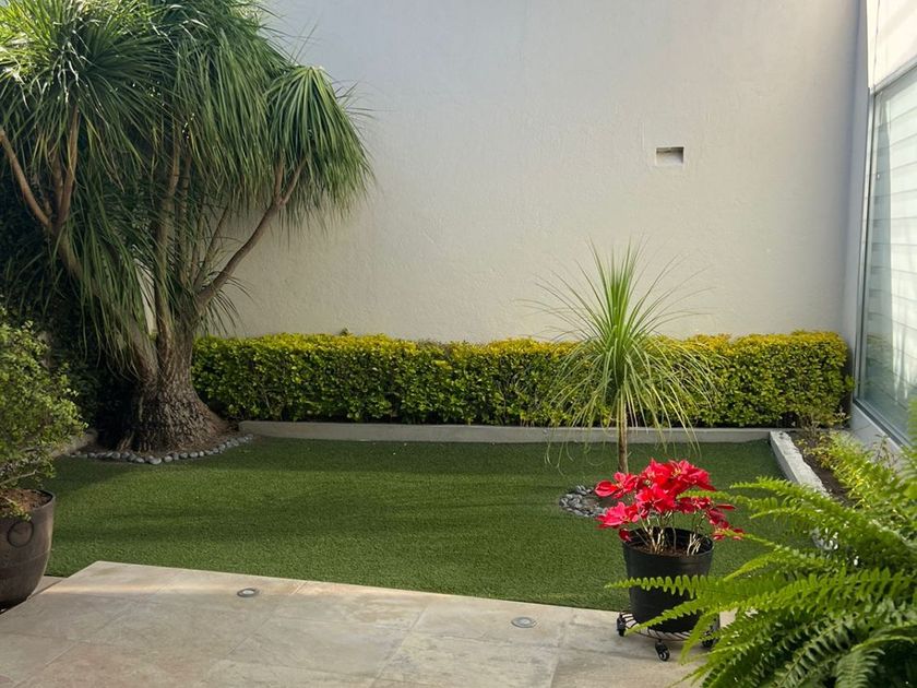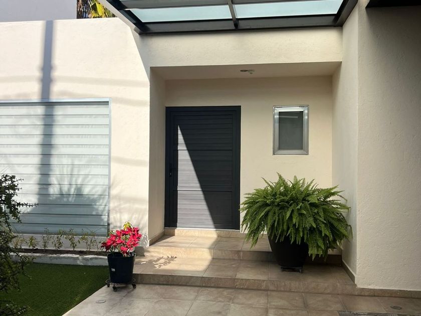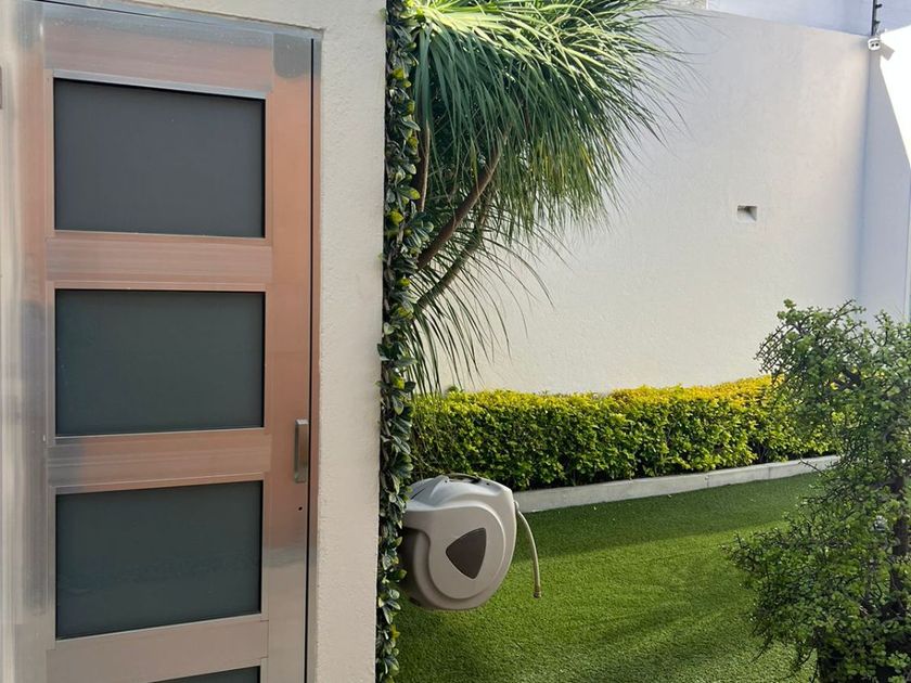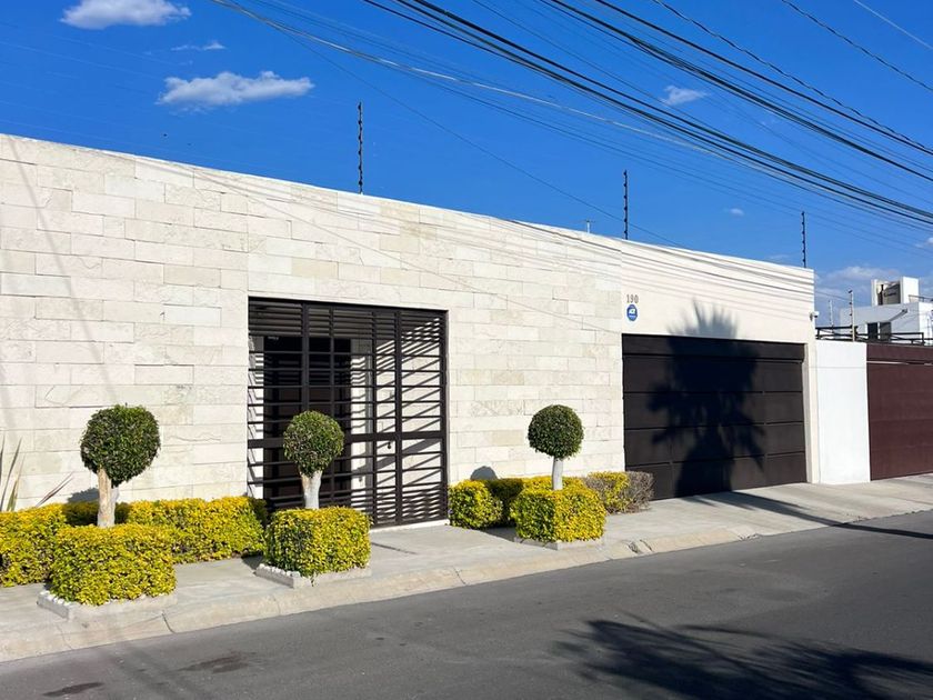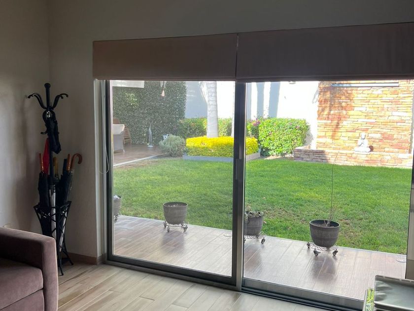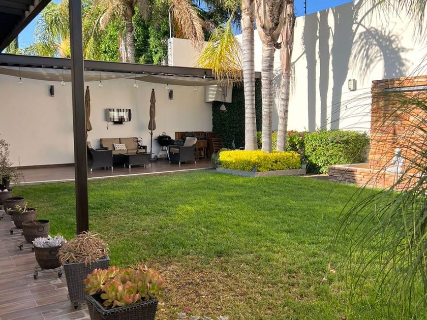 Casa en una Planta con 3 recámaras, 3 baños y ½, la recámara principal con vestidor. Estudio y/o sala de TV. Closet de Blancos Patio frontal a la entrada, con bodega, Garage techado para tres autos con portón eléctrico. Pasillo lateral de servicio con puerta de ingreso al jardín. Jardín de 120 M2 con fuente de caída de agua, palmeras, área de asador, pasillo... techado en la parte posterior de la casa con vista al jardín. Hall interior a la entrada de la casa con baño de visitas, Sala con vista al jardín frontal, Comedor, Cocina Integral con isla central y barra de granito con desayunador independiente con vista al jardín. Área de lavado con cuarto de Servicio con baño completo. Sistema de circuito cerrado, alarma, tinaco, cisterna y cerca eléctrica. 3 Lugares de estacionamiento techados