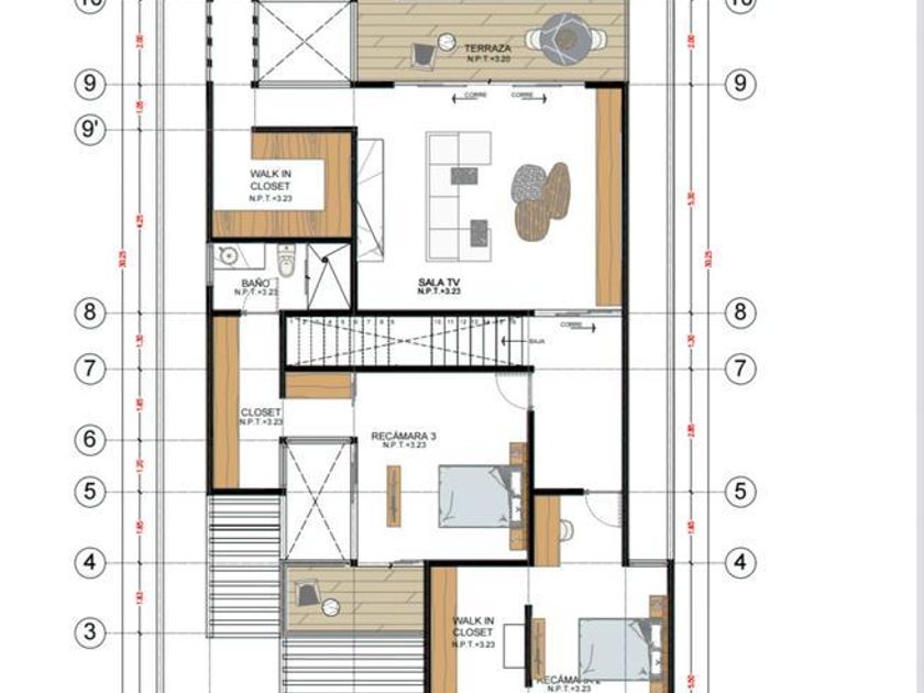 Recamara 2 con área de escritorio, walk in closet, baño y terraza