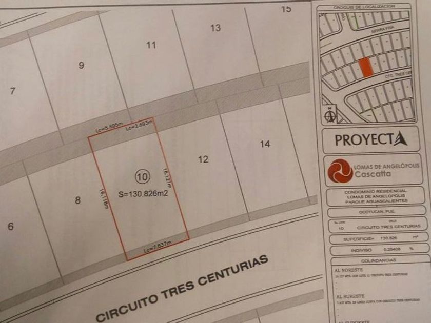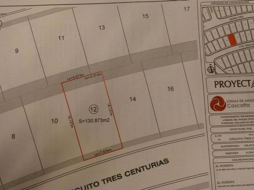 Venta de 4 lotes de lomas de angelópolis en parque aguascalientes Los lotes en promedio son de 130m2 con costo por metro cuadrado de $6,200 mxn, costo por cada lote $806,000. Excelente oportunidad de inversión, estan ubicados muy cercanos al nuevo al centro comercial cascata, por lo que la plusvalia sera inmejorable. El cluster esta a lado de gran reserva, esta área cuenta con infinidad de beneficios, como canchas de tenis, canchas de pader, u...