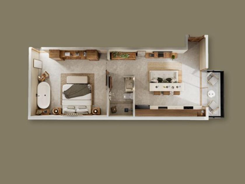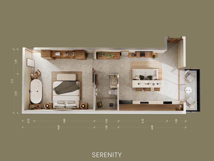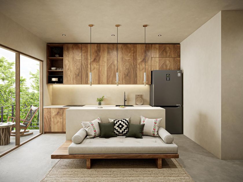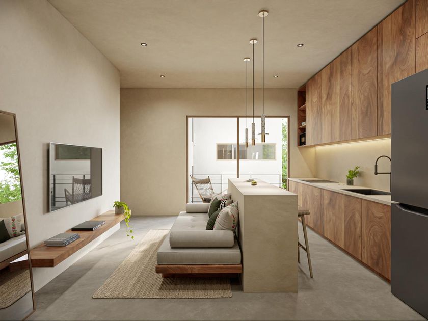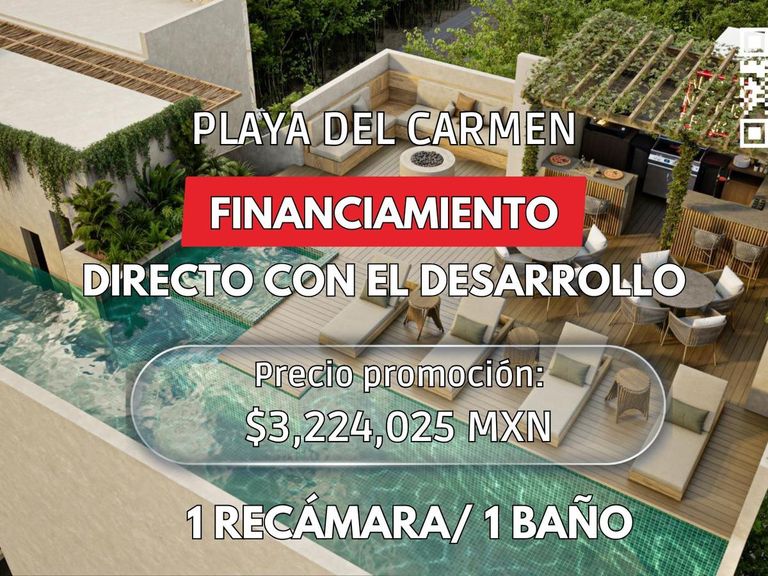 Departamento de 1 recámara y 1 baño, con 49.74 m² totales, en condominio de Playa del Carmen.
