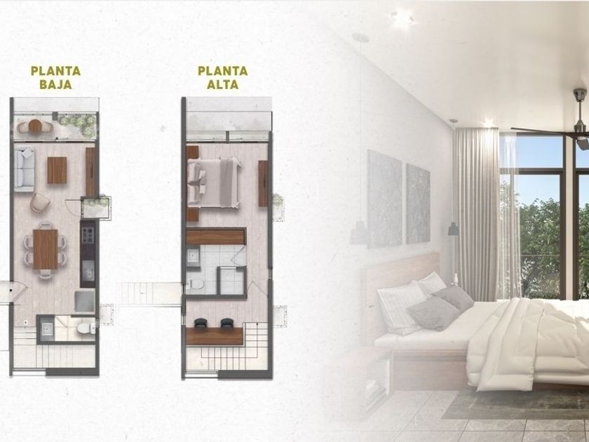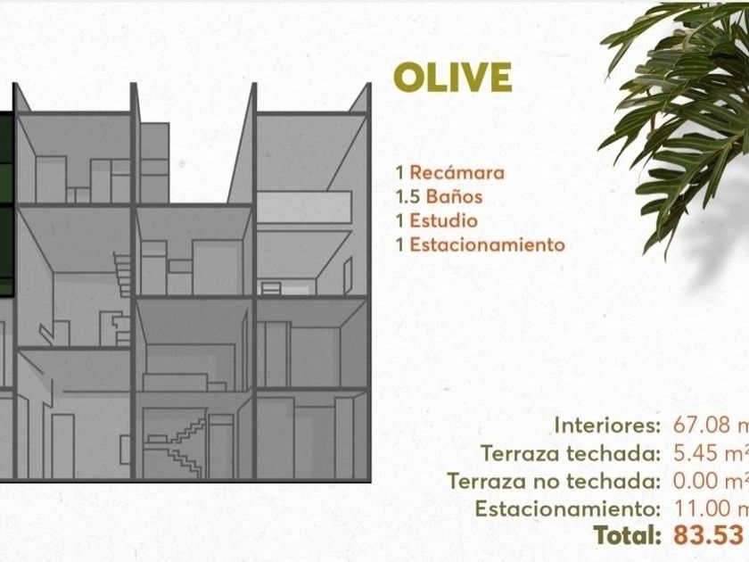 MODELO OLIVE (2 PLANTAS) *Sala comedor *Cocina con barra de granito con gavetas, parrilla eléctrica. *1/2 baño para visitas. *1 Recámara. *1 Baño completo. *1 Estudio. *1 cajón de estacionamiento. *Terraza techada.