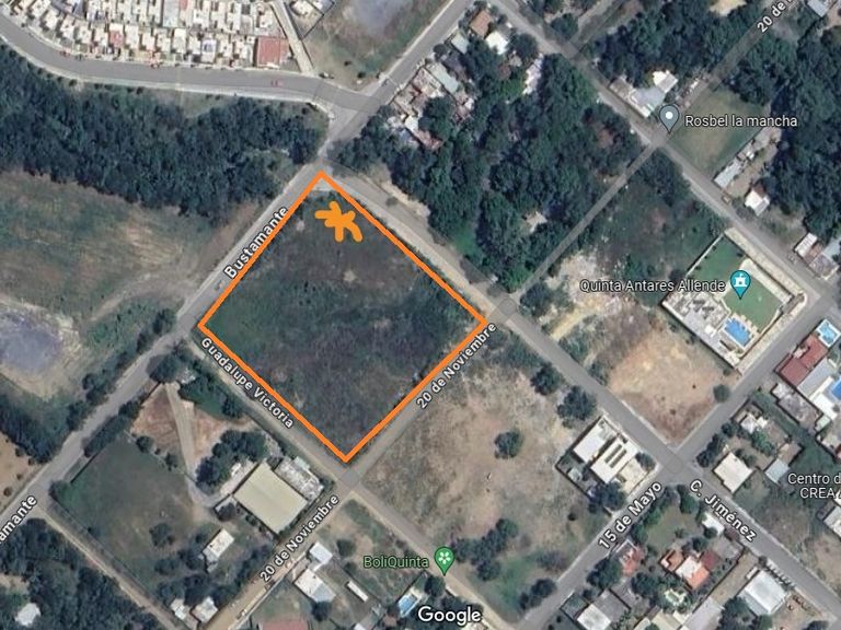 Terreno plano de forma regular (Cuadrado)Manzana completa, tiene 4 frentes. Cada frente mide 100 Metros lineales Uso de suelo mixto, se puede usar para comercio, bodega, transporte, servicios, etc. (Giros con manejo de combustible...
